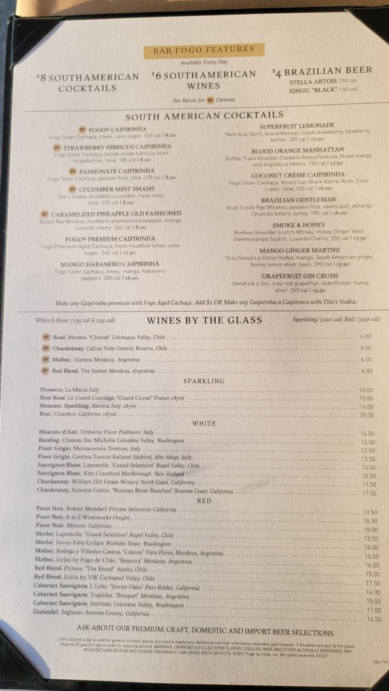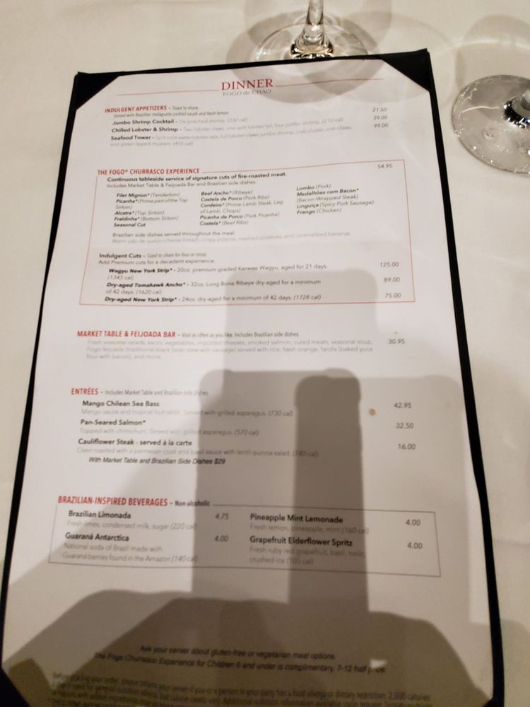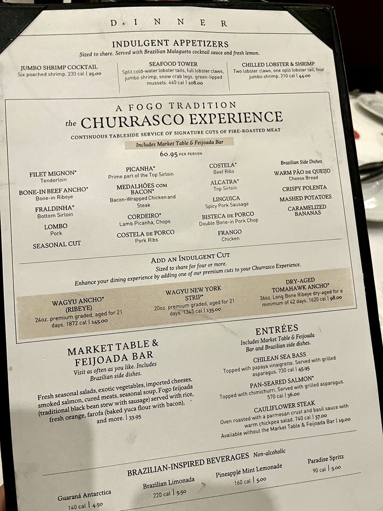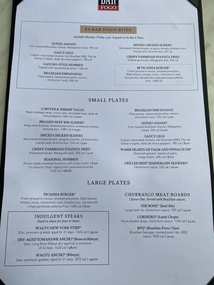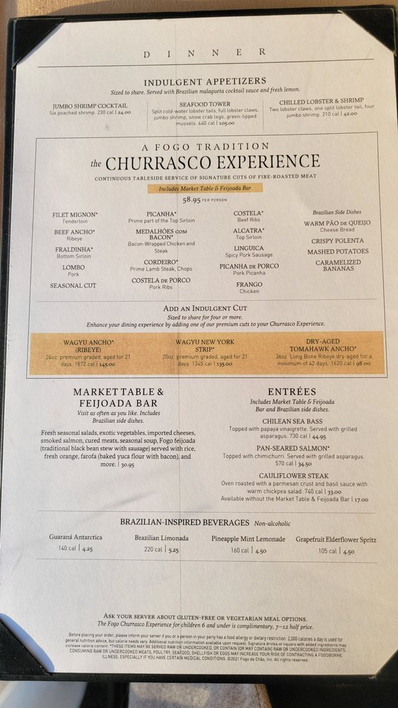 Fogo de Chão Brazilian Steakhouse VA Menu