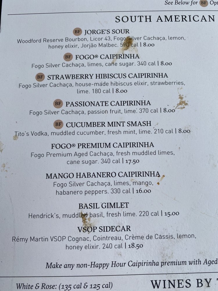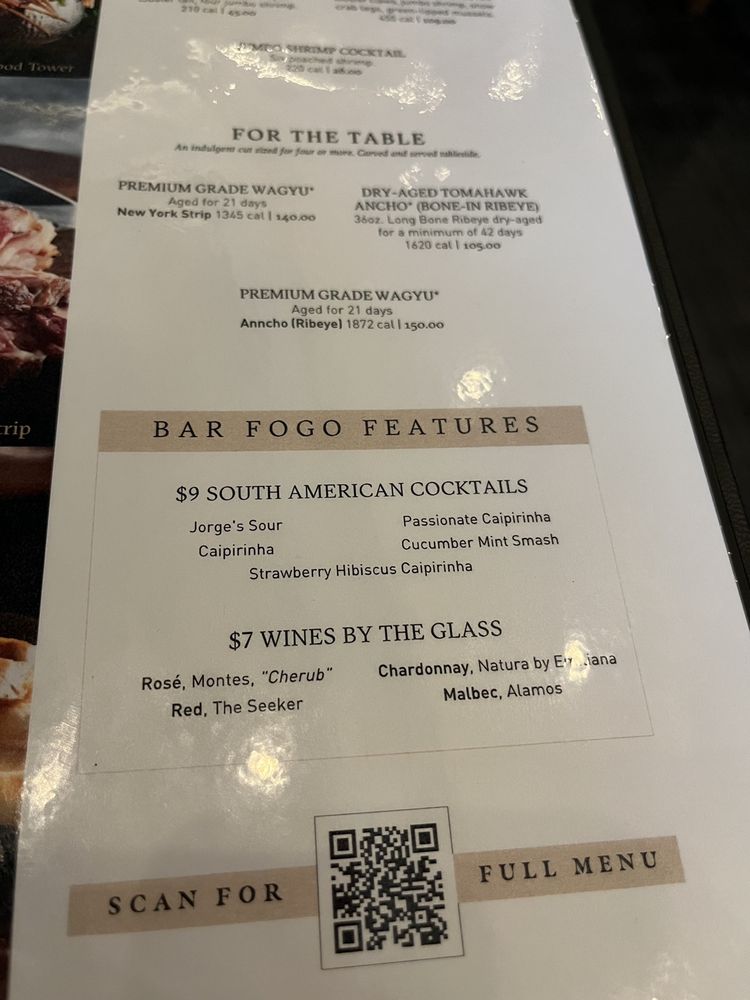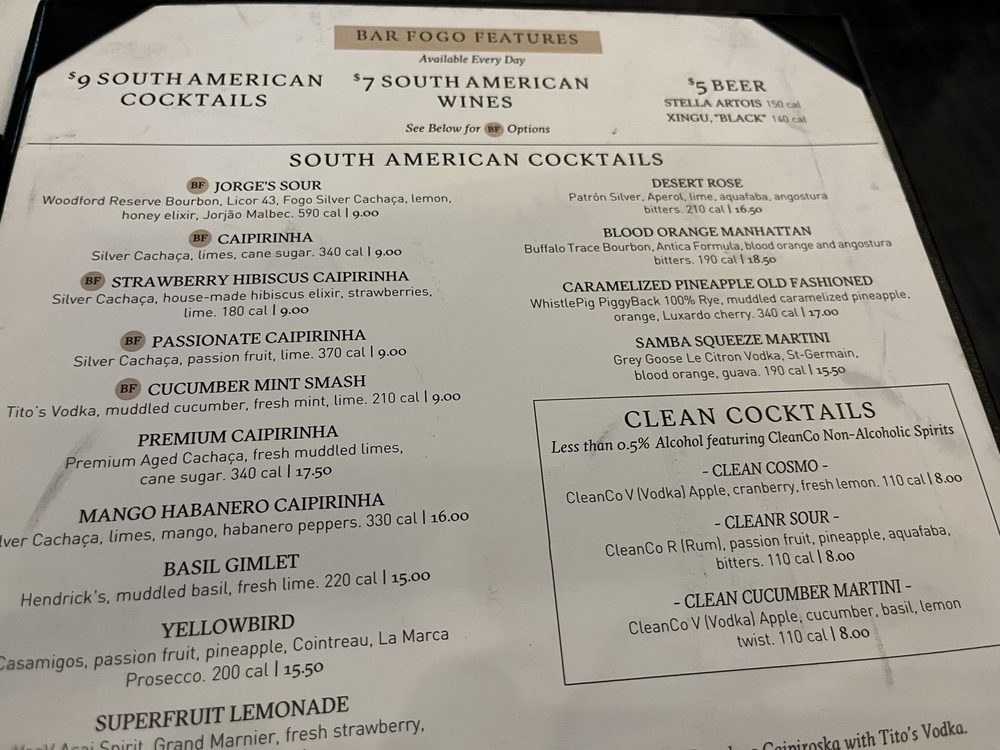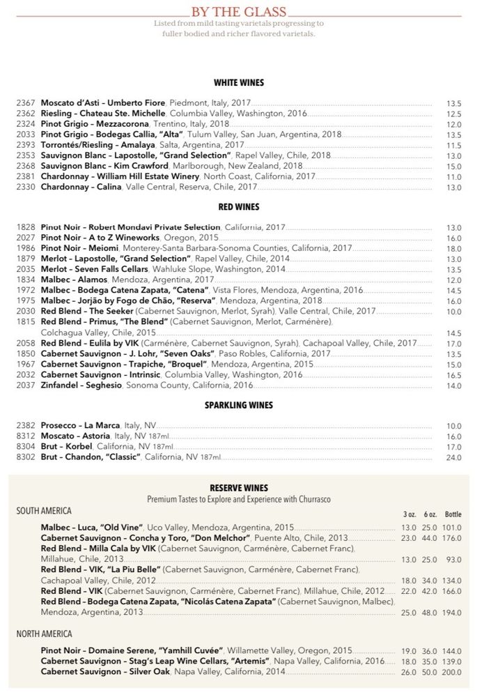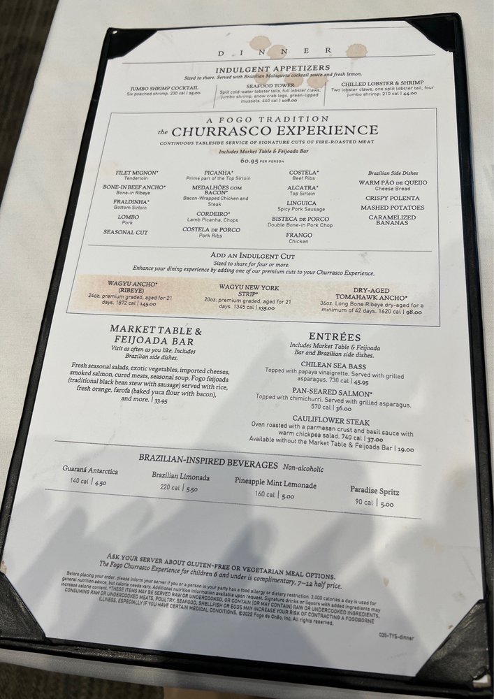 Fogo de Chão Brazilian Steakhouse VA Menu